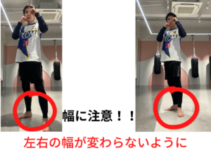 この幅が狭くなればなるほど、腰の回転が出来なくなるので正しい幅を身体で覚えましょう!!