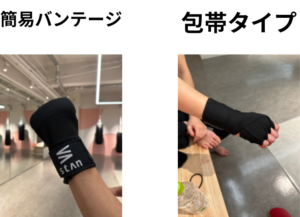 バンテージには、はめるだけの簡易タイプと本格的な巻くタイプがあります。洗濯などで楽なので、初心者や女性の方には簡易タイプがオススメです。