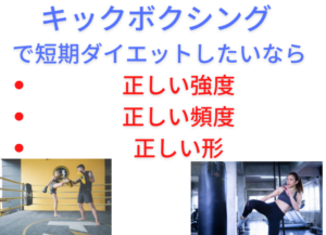 その理由からキックボクシングの経験がある人や元々筋肉があり運動能力が高い方が、高い強度を週3回位のトレーニングを行えば比較的キックボクシングでの短期ダイエットは成功しやすいと思います。