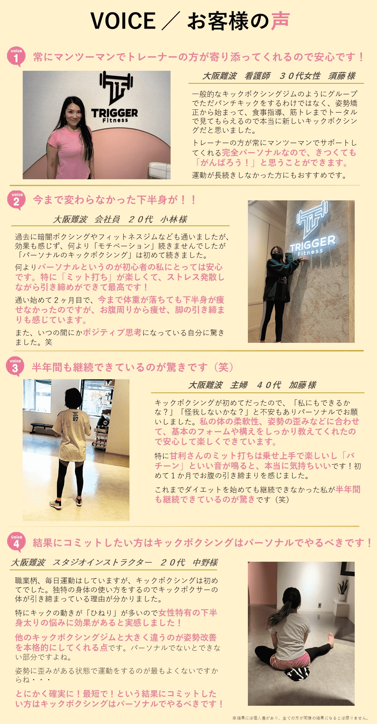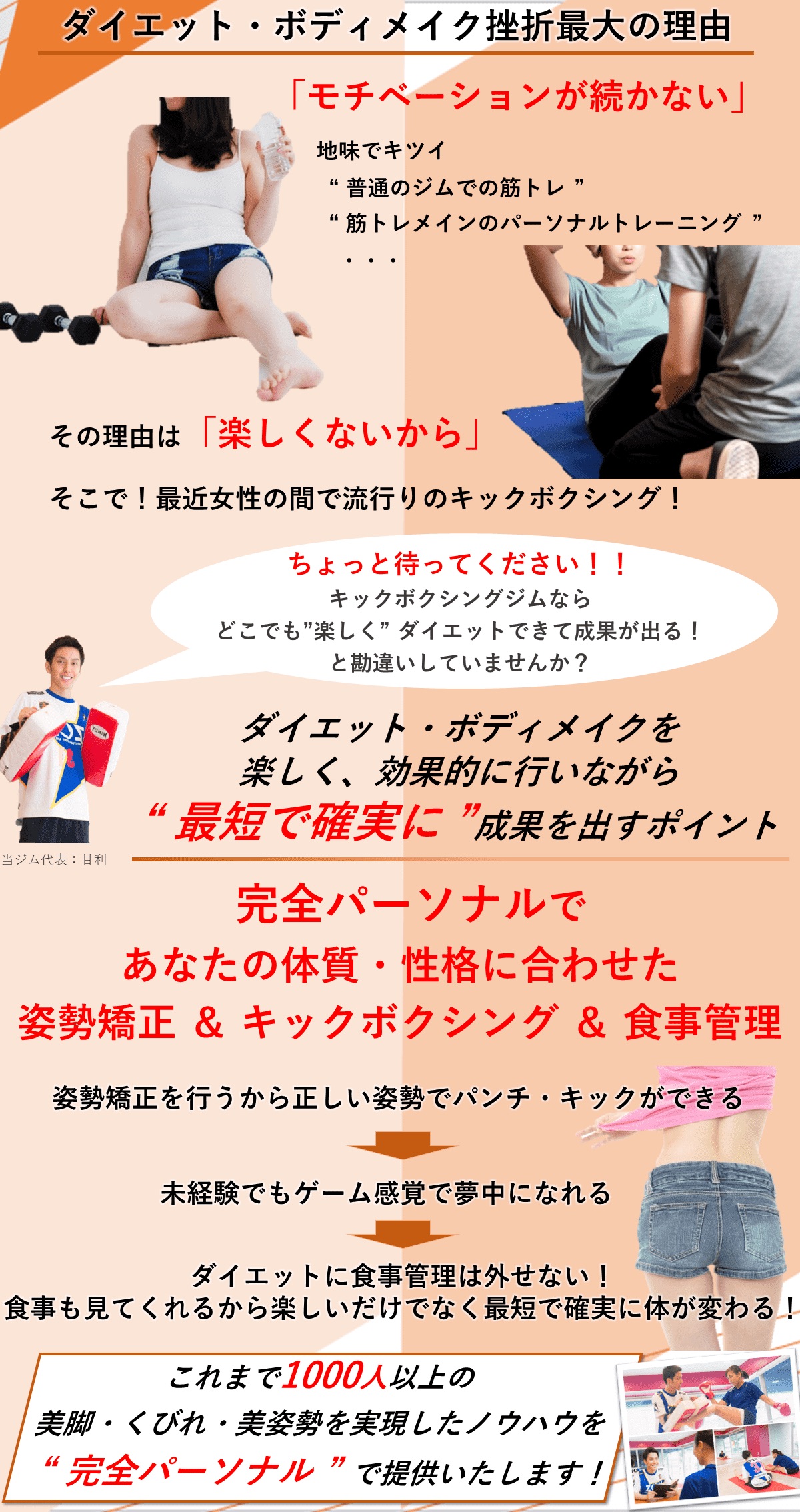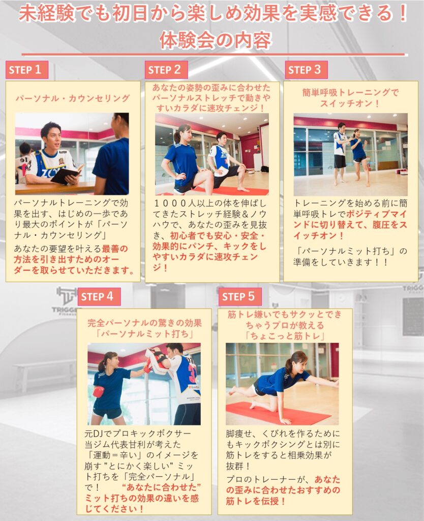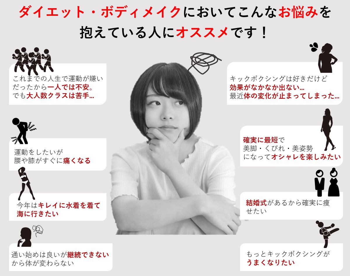 私は普段筋トレメインのパーソナルジムに、1年以上通っておりましたが、女性に大人気のキックボクシングをしてみたいと思い、